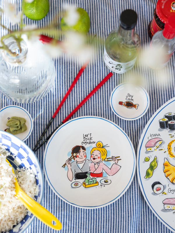 Bord Love Sushi Blond AmsterdamOf je nu zelf rolt of gewoon alles laat bezorgen: het Love Sushi bord van Blond Amsterdam maakt elk sushi-moment compleet.